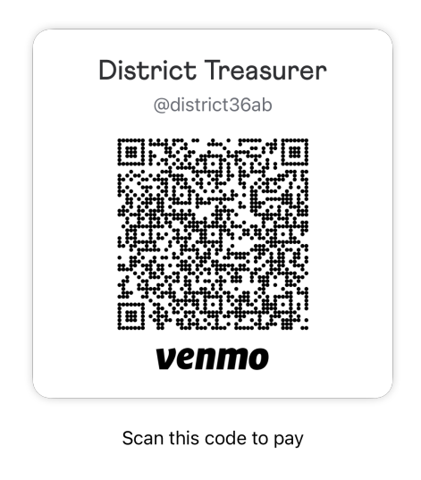 Venmo address is @district36ab